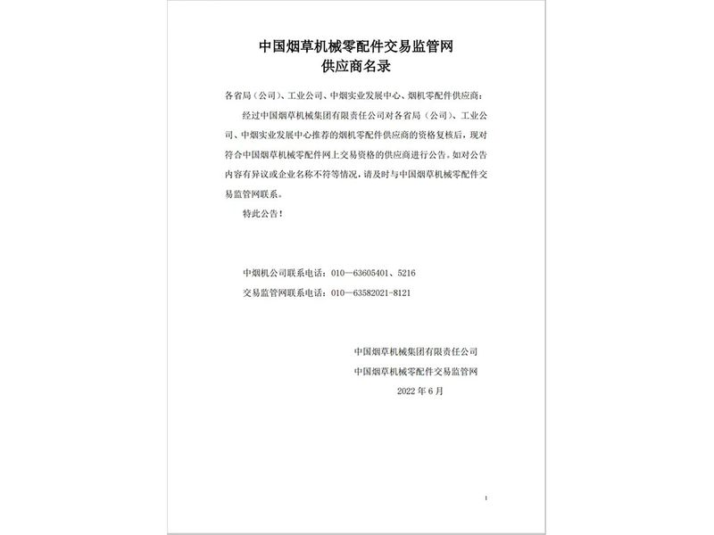 中國煙草機(jī)械零配件交易監(jiān)管網(wǎng)會員單位